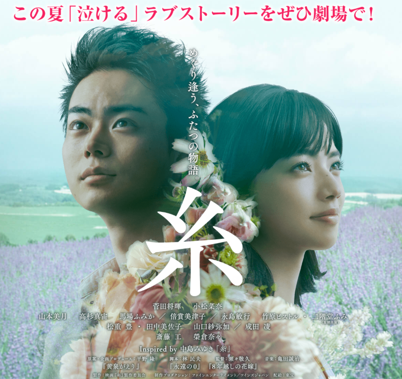 帰宅後わたしはいつものカラオケアプリで、糸を早速うたってみた。すると、その歌詞どおりに映画が展開されていたことに気付き、またも、映画の素晴らしさを実感することとなりました。あの歌詞、とてもいいですね。断言していないところがいい。可能性を秘めているところがとてもいい。よくよく聞いてみてください。